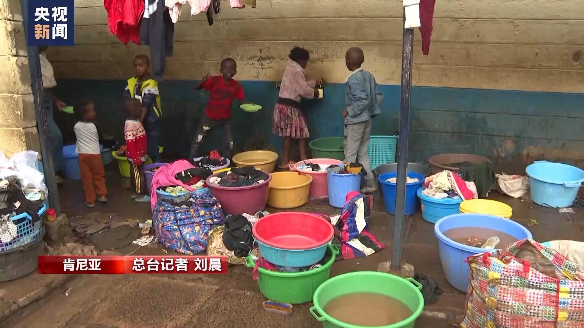 總臺記者 劉晨:這里是位于肯尼亞首都內(nèi)羅畢市中心馬薩雷貧民窟里的一所小學,因為洪災失去住所的居民們被臨時安置在這里。由于暴雨影響,肯尼亞當?shù)貙W校的開學時間從本周又向后推遲了一周。現(xiàn)在我身后這樣的教室已經(jīng)被改造成了臨時寢室,供災民休息。政府送來了棉被和枕頭,每天也會定時為這里的難民提供食物。