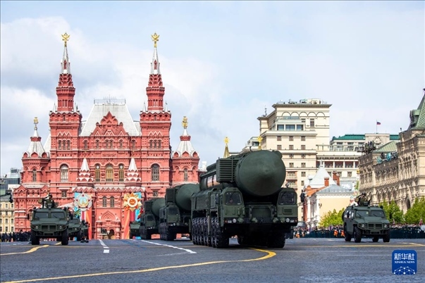 5月9日,在俄羅斯首都莫斯科,“亞爾斯”導彈系統編隊駛過紅場。新華社記者 曹陽 攝