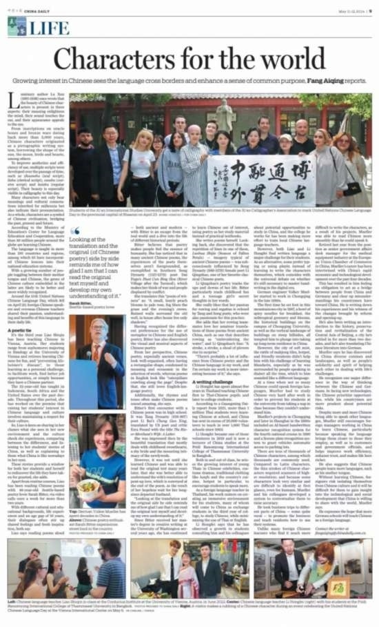 第十五個(gè)聯(lián)合國中文日和第五個(gè)“國際中文日”舉辦期間,中外語言交流合作中心與中國日報(bào)網(wǎng)聯(lián)合發(fā)起 “國際中文日”系列線上活動,鼓勵(lì)大家講述、分享與中文相遇的精彩故事,半個(gè)月內(nèi)活動參與者覆蓋全球五大洲近70個(gè)國家和地區(qū),包括英國、意大利、澳大利亞、美國、巴西、日本、韓國、泰國、老撾、迪拜、喀麥隆等,作品超2000件,閱讀量超1000萬,在中國和其他國家主流社交媒體平臺掀起“中文日”熱潮,吸引了海內(nèi)外網(wǎng)友的廣泛關(guān)注。