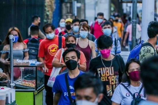 2022年1月17日,在菲律賓奎松城,人們走向公交車站。新華社發(fā)(烏馬利攝)