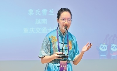 來自越南的黎氏雪蘭就讀于重慶交通大學(xué),來到中國(guó)之后,對(duì)武術(shù)產(chǎn)生了濃厚興趣。在學(xué)校的武術(shù)社團(tuán)里,她認(rèn)識(shí)了各位武術(shù)老師和一群熱愛武術(shù)的中國(guó)學(xué)生。他們熱情地接納了她,耐心地教黎氏雪蘭基本動(dòng)作和技巧。