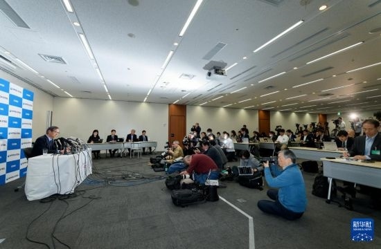 1月7日,在日本東京,日本制鐵公司會長兼首席執(zhí)行官橋本英二出席記者會。新華社記者 張笑宇 攝