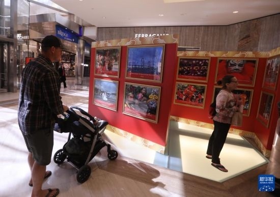1月23日,觀眾在美國加利福尼亞州奧蘭治縣南海岸廣場觀看“美國頂尖攝影師旅拍廣東”攝影展。新華社發(fā)(邱晨攝)