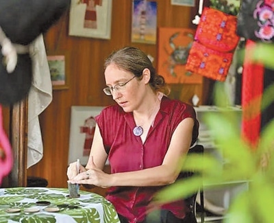“這種美麗的藝術(shù)讓我沉醉?!毙〉昀?,謝敏拿起一小塊椰殼,蘸取顏料,在椰殼上細(xì)細(xì)勾勒。