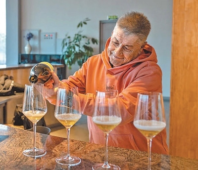 “除了葡萄酒外,我們還不斷拓展釀酒種類。這兩款酒是由我們員工自家種植的大米和蘋果釀制的?!奔贸鰞善烤谱院赖亟榻B道,“它們在市場上很受歡迎,農(nóng)產(chǎn)品附加值提高了,員工們的收入更多了,真正實(shí)現(xiàn)了產(chǎn)業(yè)與生活的緊密結(jié)合?!?/p>