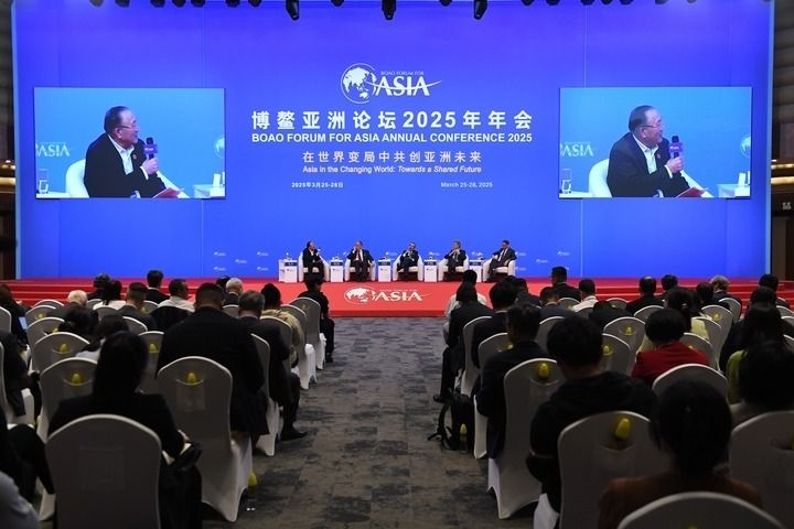 這是博鰲亞洲論壇2025年年會(huì)“高端對(duì)話(huà):在世界大變局中重建信任”分論壇現(xiàn)場(chǎng)(2025年3月26日攝)。新華社記者 謝子藝 攝