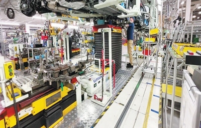 德國一家知名汽車制造商車間內(nèi),一個(gè)個(gè)明黃色的超大“行李箱”正在奔走忙碌。它們自主跟隨車身,時(shí)刻與其保持同步,并將發(fā)動(dòng)機(jī)、后橋舉起,對接底盤,完成拼合……