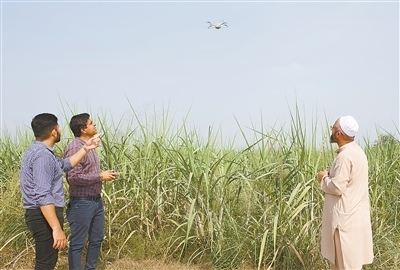 中國—巴基斯坦人工智能智慧農(nóng)業(yè)實(shí)驗(yàn)室研發(fā)人員運(yùn)用無人機(jī)定期巡檢畫面,通過人工智能分析,實(shí)時(shí)向農(nóng)戶反饋?zhàn)魑锷L情況。