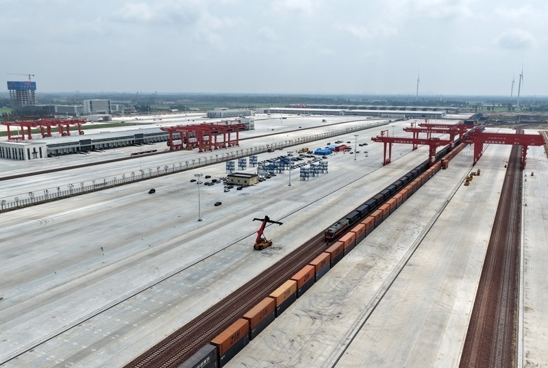 6月28日,一班列車(chē)在鄭州國(guó)際陸港核心功能區(qū)啟動(dòng)運(yùn)行。