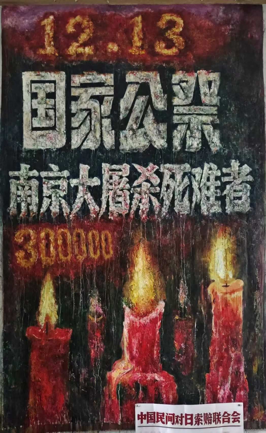 隨信附上的四張圖片為中國民間對(duì)日索賠聯(lián)合會(huì)志愿者、重慶畫家李云創(chuàng)作的油畫照片,畫家30年來一直在研究南京大屠殺歷史,已創(chuàng)作反映南京大屠殺歷史事實(shí)的油畫作品共200多幅,將擇機(jī)對(duì)外展示,力圖以畫筆向全社會(huì)講述、宣傳南京大屠殺暴行。