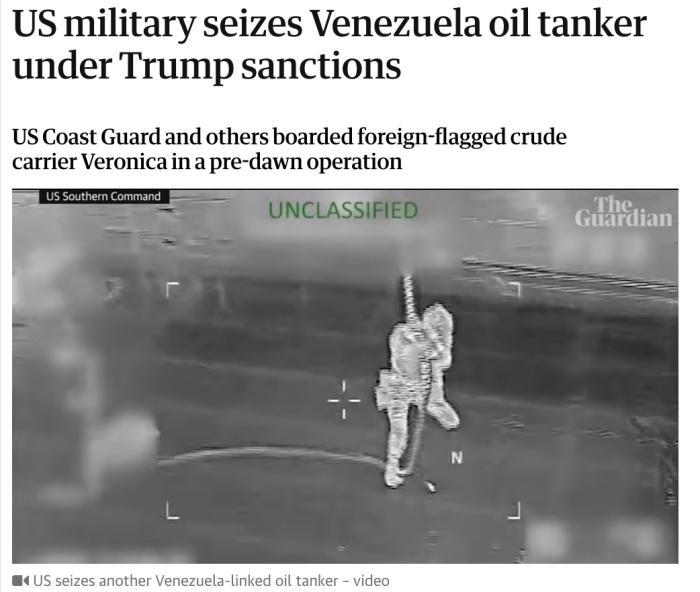 據(jù)報道,美國南方司令部在社交媒體上表示,一艘名為“韋羅妮卡”號的油輪,在黎明前的一次行動中被美國海軍人員登船檢查。