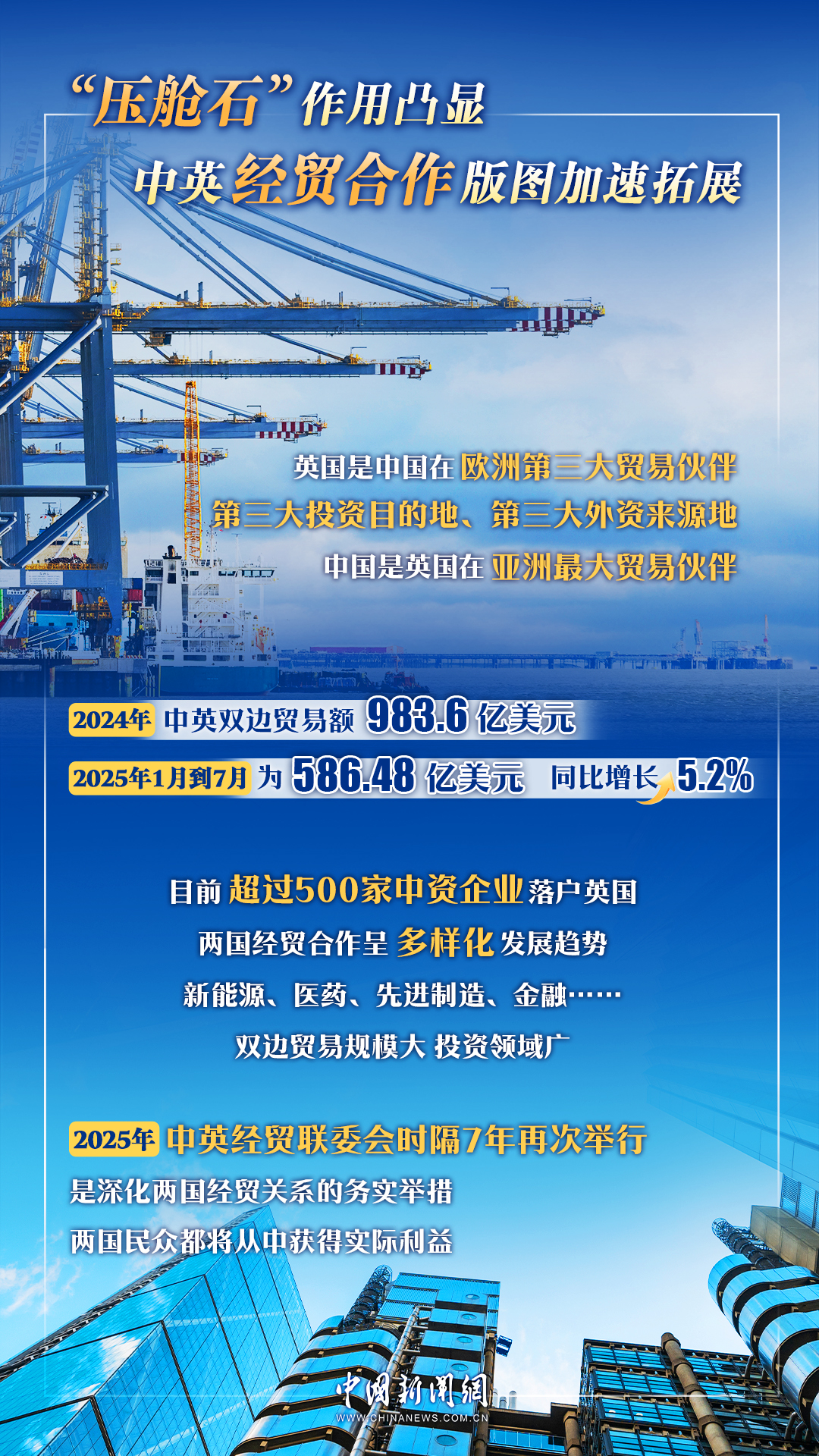 2025年2月,第十次中英戰(zhàn)略對話在倫敦舉行之際,中共中央政治局委員、外交部長王毅指出,中方視英方為重要戰(zhàn)略伙伴,愿落實兩國領(lǐng)導人重要共識,鞏固雙邊關(guān)系企穩(wěn)向好態(tài)勢,規(guī)劃好下階段高層交往,深化各領(lǐng)域務實合作,推動雙邊關(guān)系在新的一年展現(xiàn)新氣象。