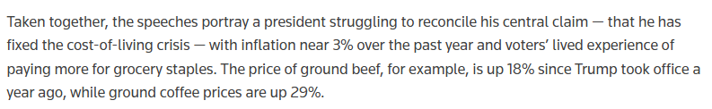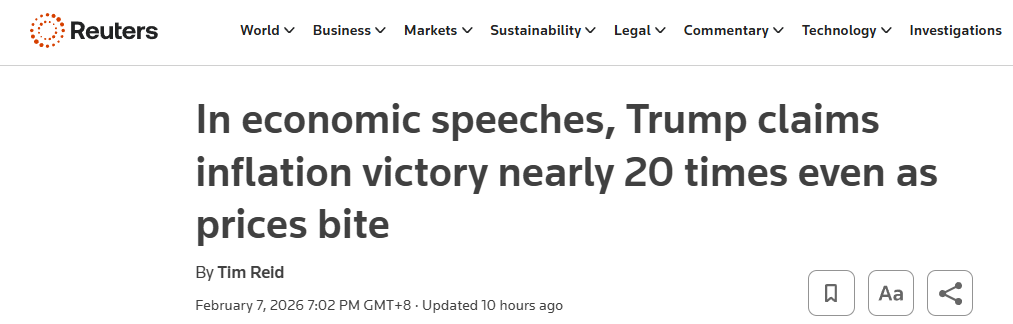 報道認(rèn)為,這些數(shù)據(jù)與美方“已解決生活成本危機(jī)”的表述形成反差。而相關(guān)言論將通脹問題描述為“已經(jīng)解決”,這一說法難以與民眾在超市等日常消費(fèi)場景中的體驗相吻合。