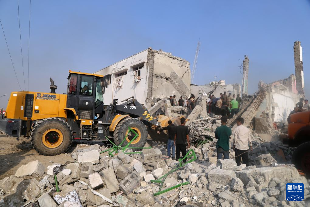 2月28日,在伊朗米納卜市一所被襲擊的小學(xué),救援人員和當(dāng)?shù)鼐用裨噲D從廢墟里營(yíng)救傷員。