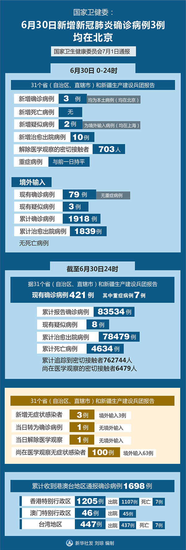 國家衛(wèi)健委:6月30日新增新冠肺炎確診病例3例 均在北京