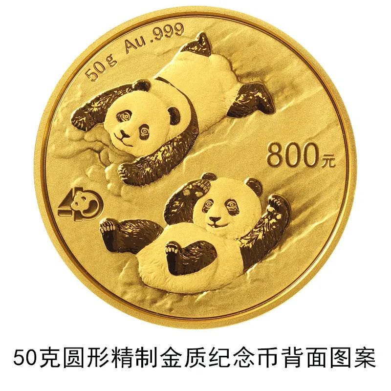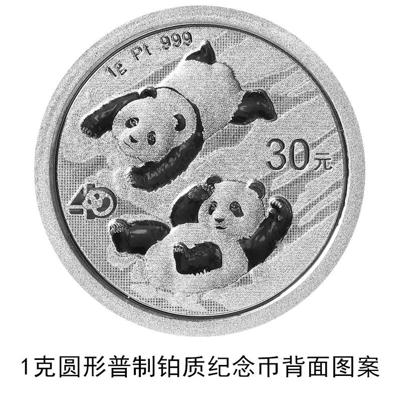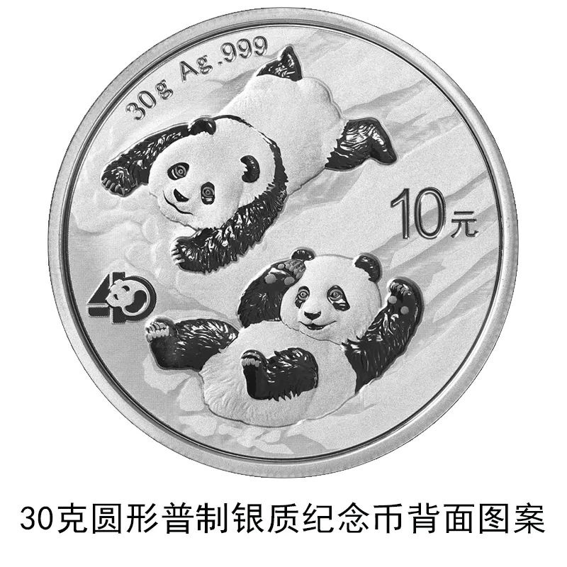 該套貴金屬紀(jì)念幣正面圖案均為北京天壇祈年殿,并刊國名、年號(hào);背面圖案均為大熊貓滑雪嬉戲場景,輔以“熊貓金幣發(fā)行40周年標(biāo)識(shí)”元素,并刊面額、重量及成色。