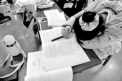 湖南省衡陽市南華大學,考研學生在圖書館里看書復習。彭鵬攝/光明圖片