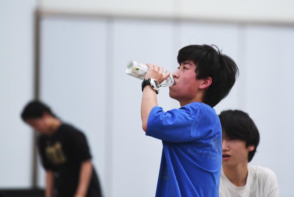 6月21日,在河南省鄭州市金水區(qū)花園路,男孩在運(yùn)動(dòng)后補(bǔ)水。新華社記者張浩然攝