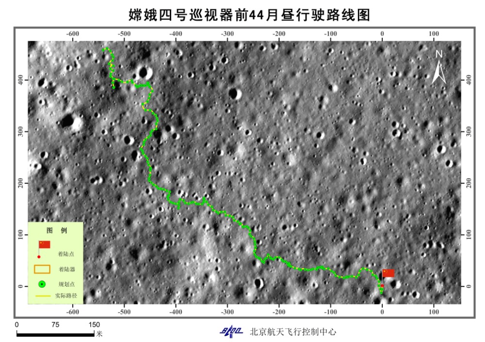 嫦娥四號(hào)任務(wù)“玉兔二號(hào)”月球車(chē)和著陸器分別于7月5日19時(shí)14分和7月6日6時(shí)整完成休眠設(shè)置,完成第44月晝工作,進(jìn)入第44月夜休眠。月球車(chē)在月球背面累計(jì)行駛里程1239.88米。