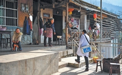 四川省北川羌族自治縣曲山鎮(zhèn)石椅村,村醫(yī)入戶走訪重點人群,提供醫(yī)療服務(wù)。 新華社記者 張超群攝