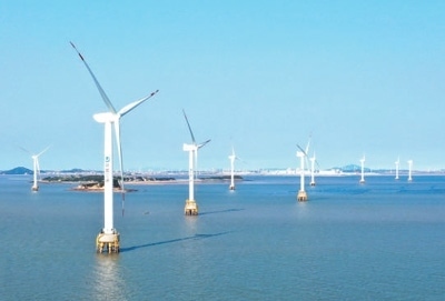 福建省福清市,興化灣海上風(fēng)電場一角。 新華社記者 林善傳攝