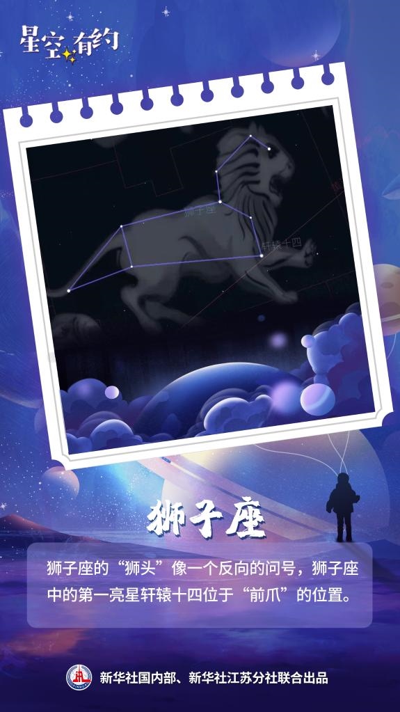 王科超說,獅子座的“獅頭”像一個(gè)反向的問號(hào),“春季大三角”中的五帝座一處于獅子座的“獅尾”,而獅子座中的第一亮星軒轅十四則位于“前爪”的位置。獅子座的觀測(cè)可以從3月持續(xù)至8月,感興趣的公眾可以一觀。