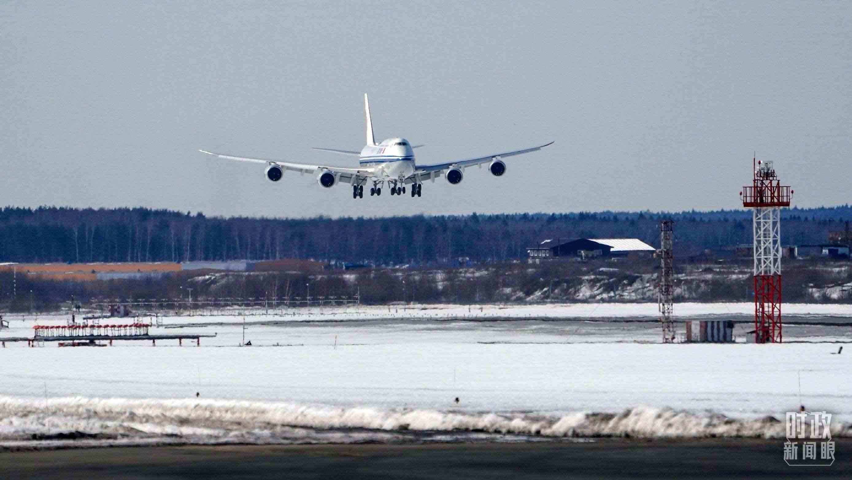 △習近平主席乘坐的專機即將落地莫斯科。(總臺國廣記者李晉拍攝)