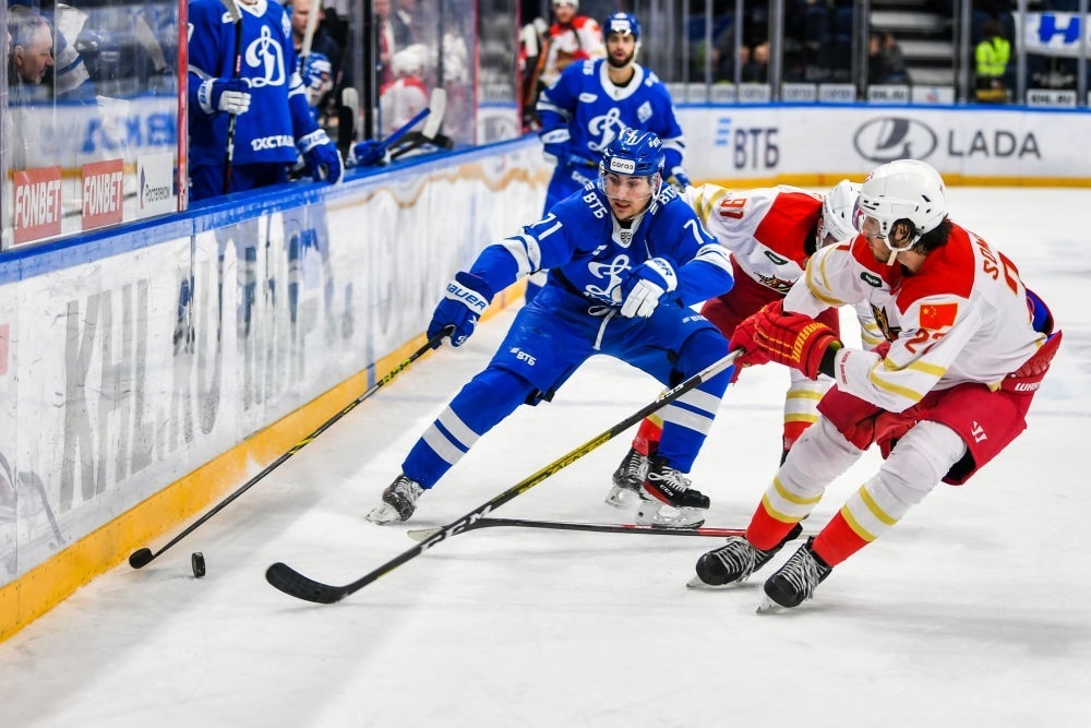 ↑2022年11月19日,中國北京昆侖鴻星隊(紅色)與俄羅斯莫斯科迪納摩隊在莫斯科舉行中俄體育交流年冰球友誼賽。兩國元首親自推動,延續(xù)互辦國家主題年的友好傳統(tǒng),繼“青年友好交流年”“媒體交流年”“地方合作交流年”“科技創(chuàng)新年”后,將2022年和2023年確定為“體育交流年”。