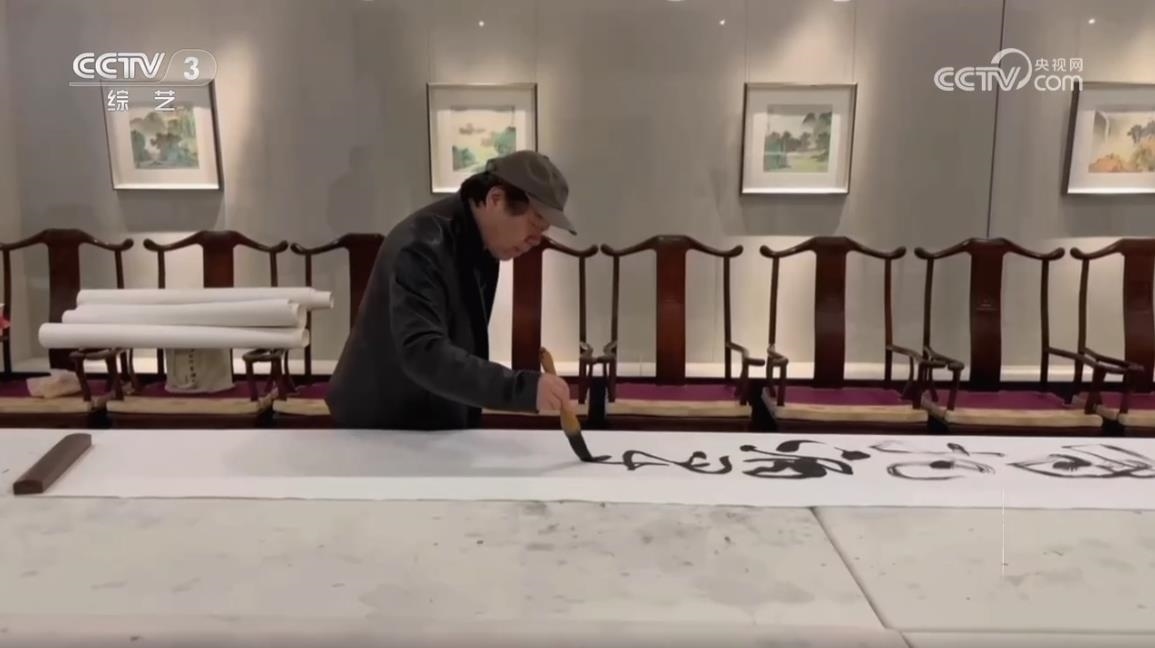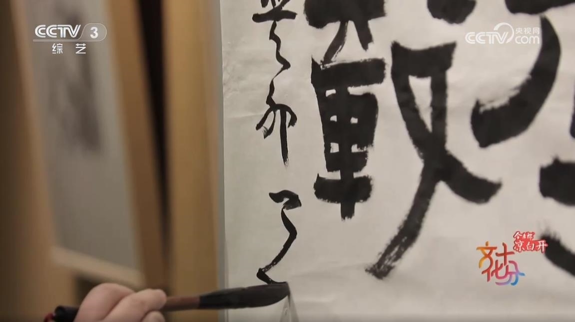 中國書法家協(xié)會(huì)草書專業(yè)委員會(huì)副主任、上海市書法家協(xié)會(huì)主席 丁申陽:武打的場面,他(導(dǎo)演)說后面一堵墻,你可以用草書來書寫,掛在后面作背景。他說這個(gè)草書跟武術(shù)其實(shí)有相同點(diǎn),都是動(dòng)態(tài)的美,也有左右避讓的關(guān)系,長短的協(xié)調(diào)的關(guān)系,還有重輕的關(guān)系,矛盾平衡之間尋找一個(gè)點(diǎn),這個(gè)點(diǎn)就是協(xié)調(diào),協(xié)調(diào)就是美的。