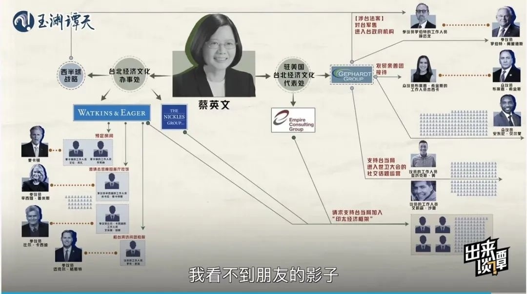 趁熱再打鐵,玉淵譚天繼續(xù)抽絲剝繭,以數(shù)據(jù)視頻《起底!臺當(dāng)局“朋友圈”大公開》深扒臺當(dāng)局近兩年在美國登記在冊的游說方式與對象,用翔實的數(shù)據(jù),揭秘了臺當(dāng)局能接觸到的美國會人員多為邊緣人的真相,結(jié)合送“保護費”、送“官職”等賣臺行為實錘,讓臺當(dāng)局在所謂“美臺關(guān)系”中的卑微姿態(tài)展露無遺。