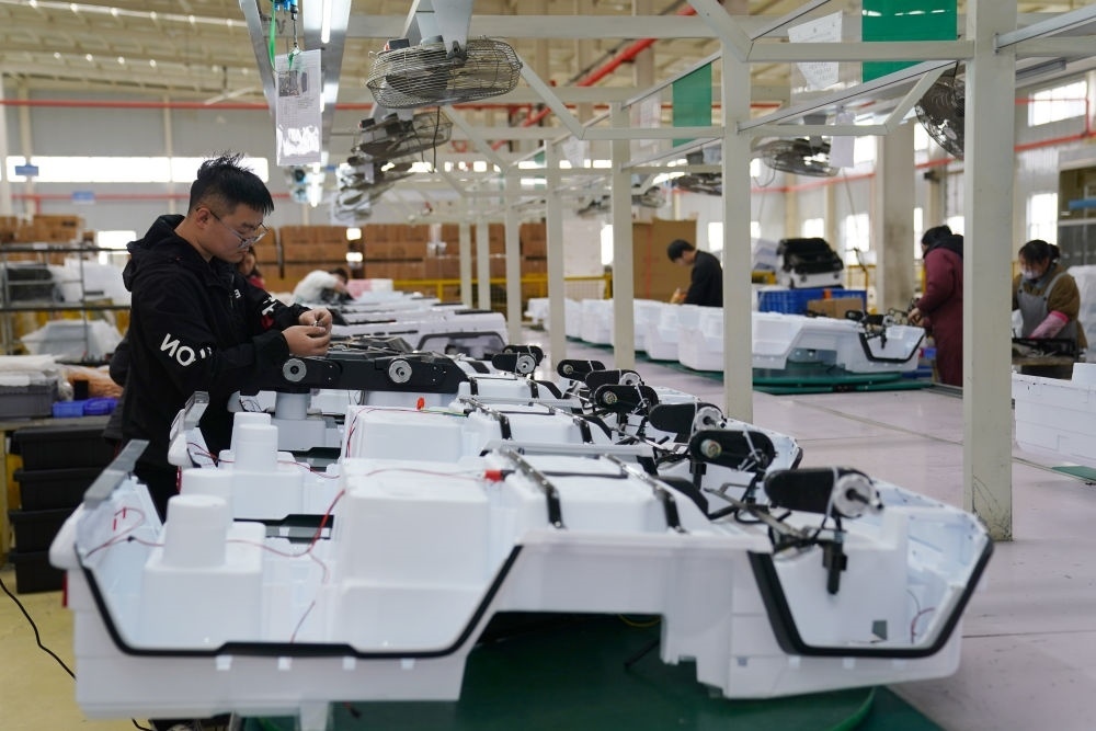 3月16日,工人在河北省邢臺(tái)經(jīng)濟(jì)開(kāi)發(fā)區(qū)一家外貿(mào)企業(yè)生產(chǎn)車(chē)間組裝童車(chē)產(chǎn)品。新華社記者 駱學(xué)峰 攝