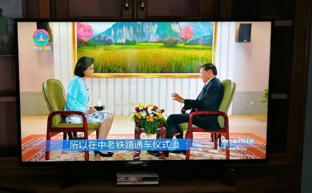 △專訪老撾國(guó)家主席通倫的節(jié)目在老撾國(guó)家電視臺(tái)播出