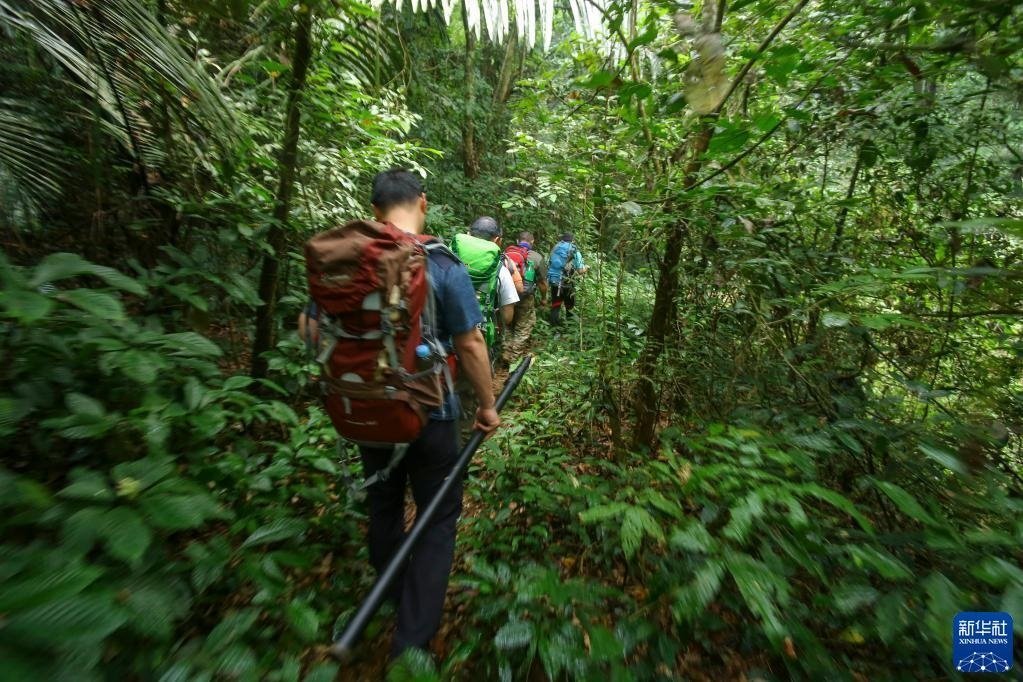 3月16日,聯(lián)合科考隊(duì)成員穿行在密林中。