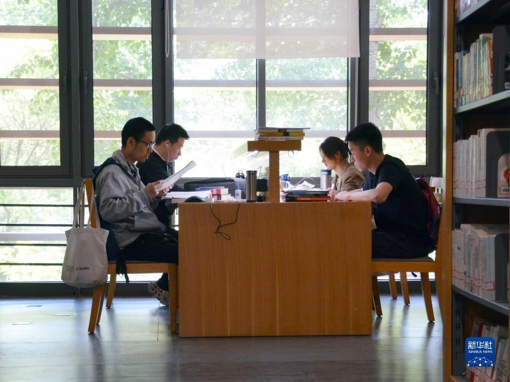4月29日,在北京外國(guó)語大學(xué)圖書館,學(xué)生們利用假期讀書“充電”。