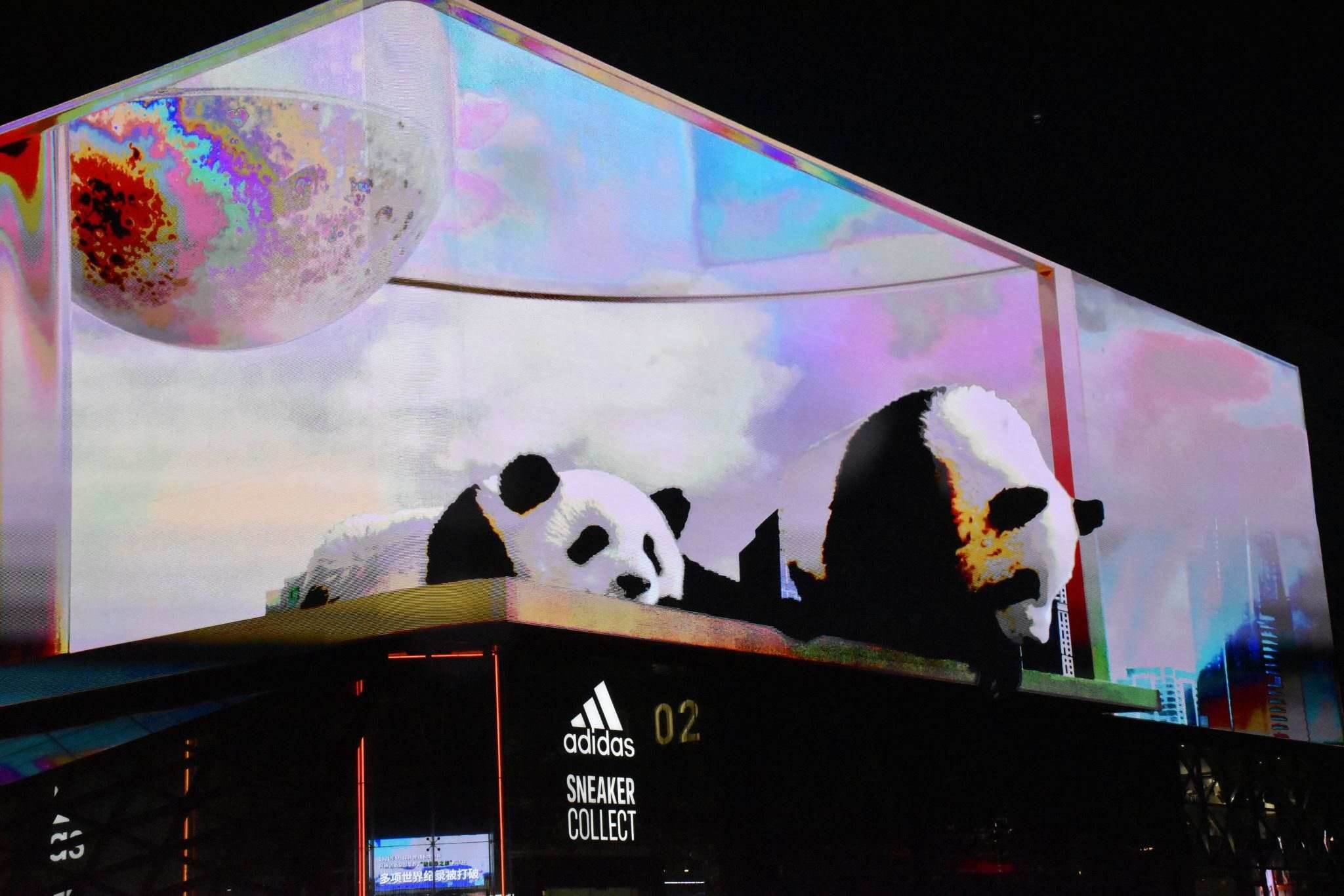 成都:大熊貓亮相太古里裸眼3D屏