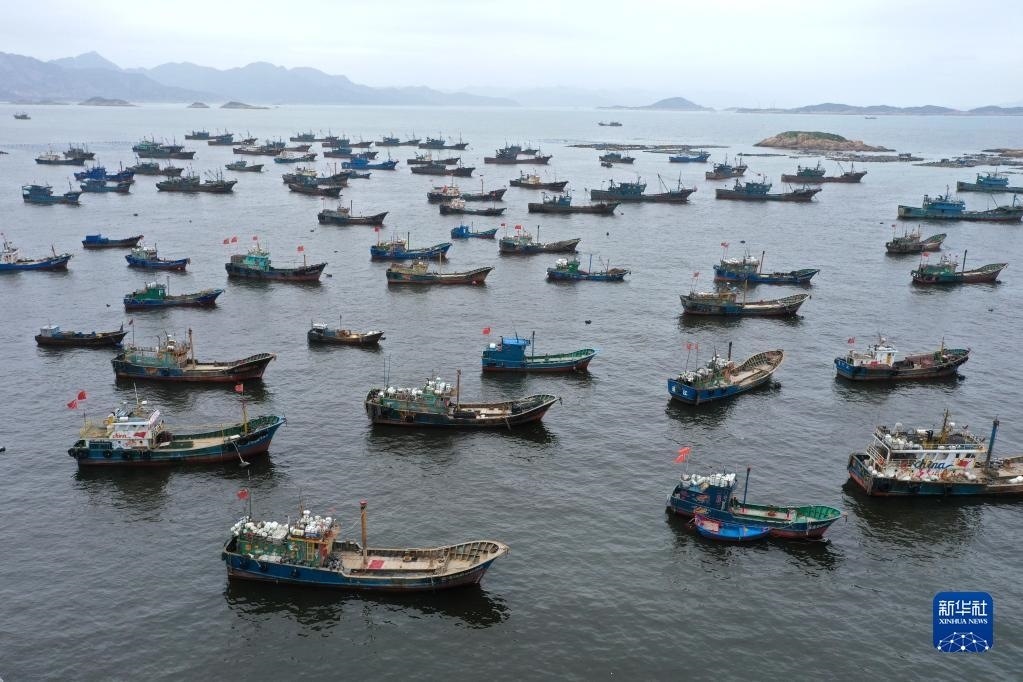 4月30日清晨,在浙江省舟山市普陀區(qū)沈家門漁港,漁船陸續(xù)進港準備休漁(無人機照片)。