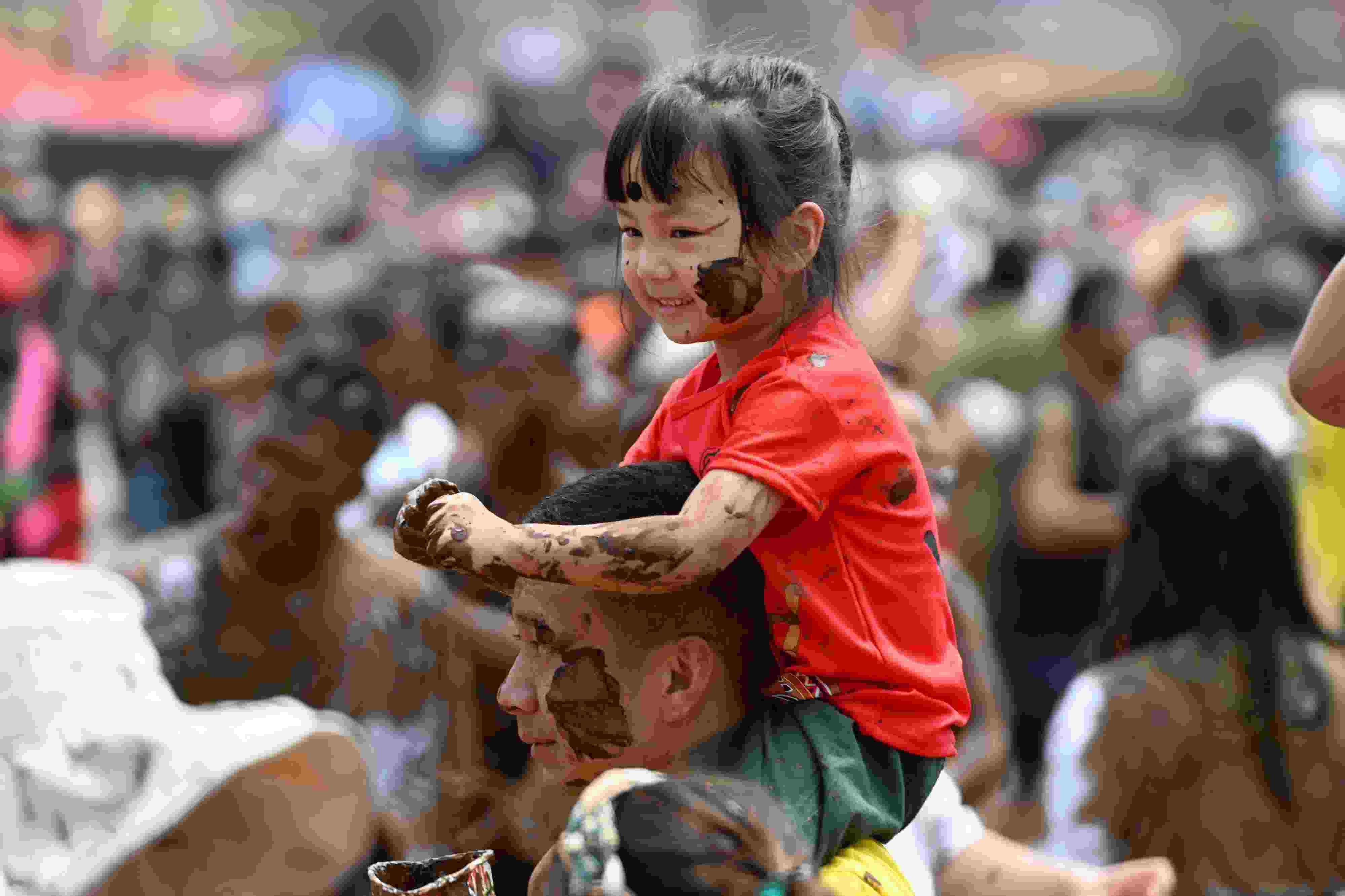 2023年4月30日,云南臨滄,游客相互抹泥表示祝福。當日,2023年中國佤族司崗里摸你黑狂歡節(jié)在云南省臨滄市滄源佤族自治縣啟幕。人們用天然原料“娘布洛”配置而成的涂料相互涂抹表示祝福,摸得越黑,代表快樂幸福越長久。 視覺中國