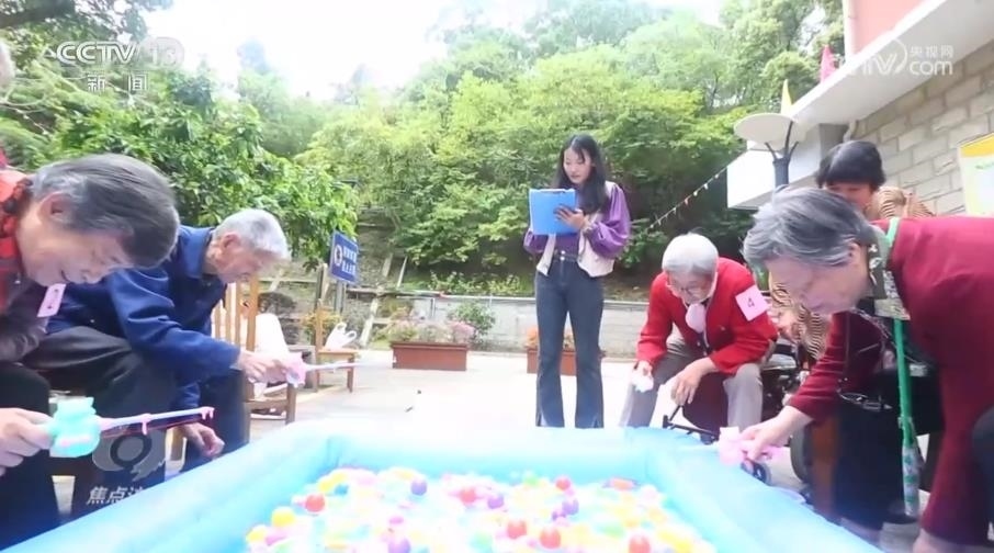 充氣魚池、塑料魚、網(wǎng)兜、小桶,在福利院的大院里,一場趣味釣魚大賽正在緊張進(jìn)行。這個披肩長發(fā)、特別愛笑的裁判是老人們的“開心果”,也是福利院的“90后”社工朱小冉。和護(hù)理員楊愛紅不同,朱小冉的主要工作通俗來說,就是怎么讓老人們過得更樂呵。