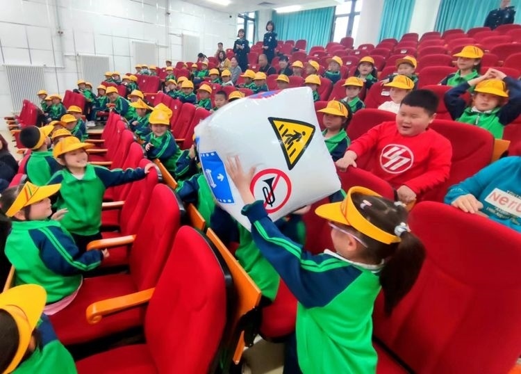同學(xué)通過(guò)游戲的方式了解交通安全知識(shí)。