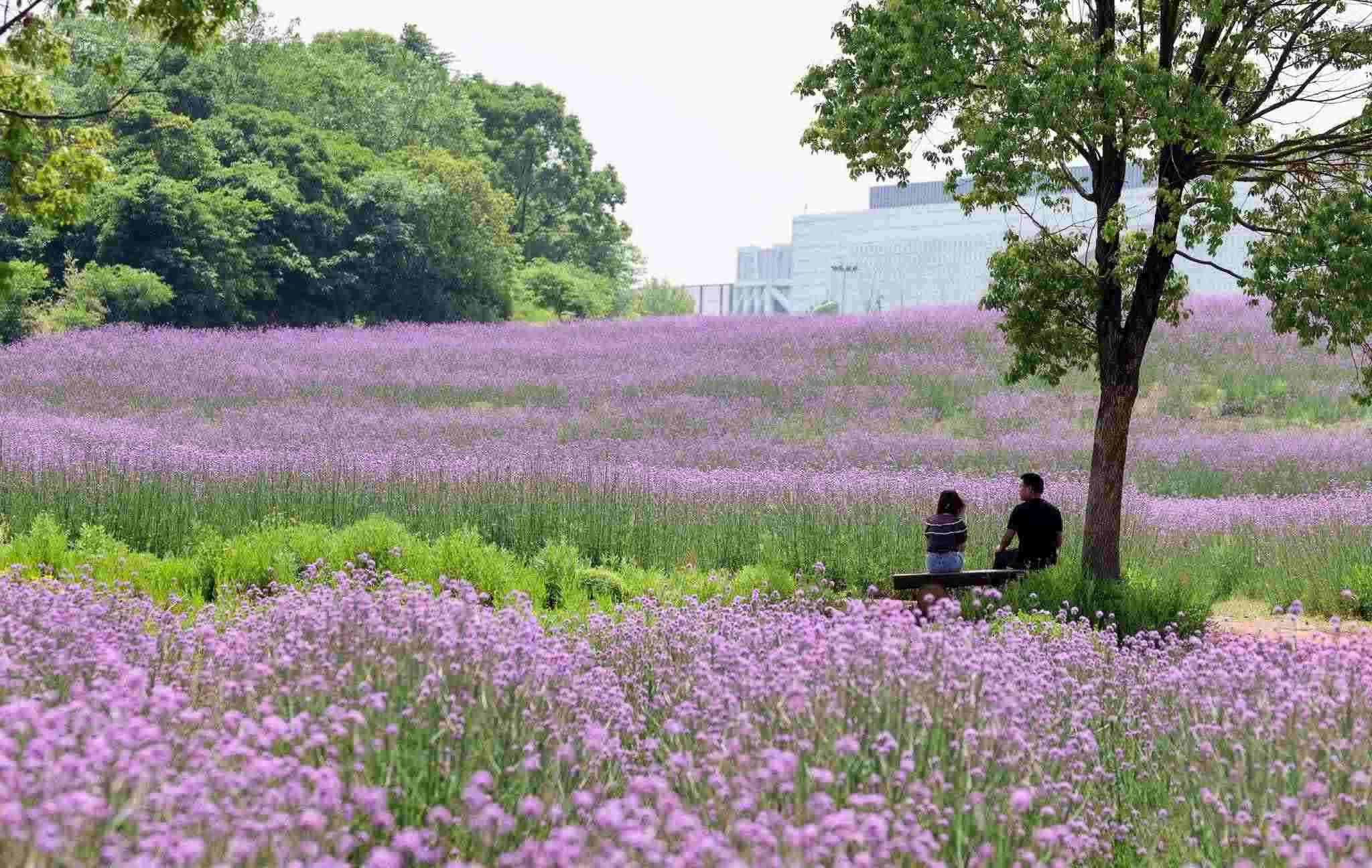 近日,湖北武漢光谷中央生態(tài)大走廊最北端的九峰一路,馬鞭草競(jìng)相綻放,吸引不少市民和游客來(lái)此賞花。視覺(jué)中國(guó)