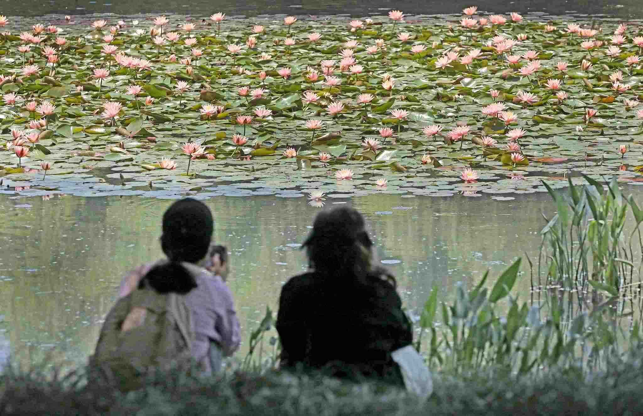 2023年5月9日,杭州,西湖龍泓澗景區(qū),各色睡蓮成片綻放,在水面上搖曳身姿,靜謐朦朧,夢(mèng)幻唯美,恍若走進(jìn)“莫奈花園”,吸引眾多市民游人前來賞花拍照。視覺中國