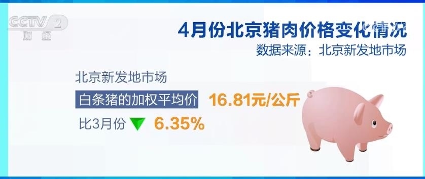 數(shù)據(jù)顯示,4月份北京新發(fā)地市場白條豬的加權(quán)平均價是每公斤16.81元,比3月份下降6.35%,是今年以來的最低價格,也是去年5月份以來的最低價格。市場負責(zé)人介紹說,盡管4月份的豬肉消費比3月份有比較明顯的增長,但是供應(yīng)過剩的局面仍然存在,需求增長的幅度不及供應(yīng)能力增長的幅度,4月份白條豬的日均上市量在近5年同期中處于中等偏上的位置。