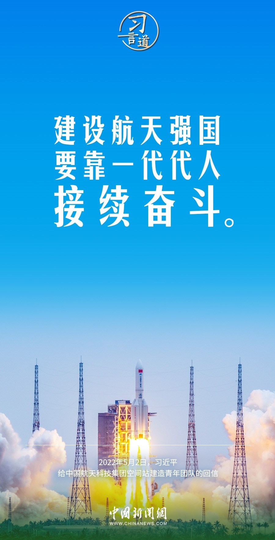 【中國星辰】習(xí)言道|建設(shè)航天強(qiáng)國要靠一代代人接續(xù)奮斗