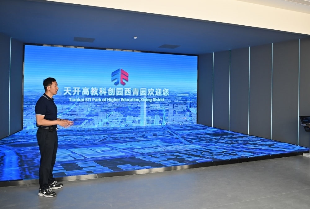 工作人員在天開高教科創(chuàng)園西青園介紹情況(5月11日),新華社記者李然攝