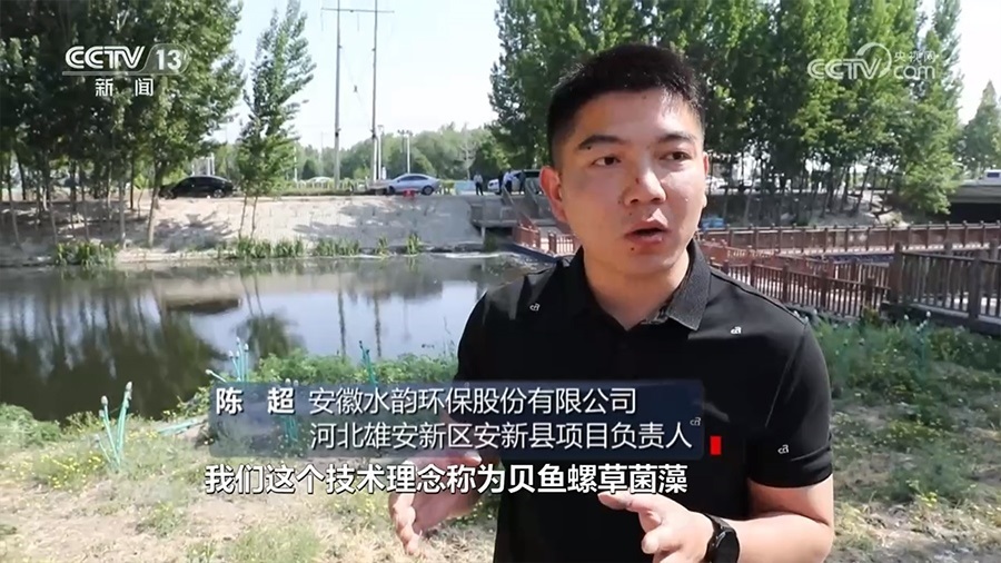 安徽水韻環(huán)保股份有限公司河北雄安新區(qū)安新縣項(xiàng)目負(fù)責(zé)人陳超:“水下是木樁搭的貝床。貝分為濾食性和刮食性,對(duì)水體里面浮游生物,尤其像菌藻類水里面的COD(化學(xué)需氧量)、氨氮、總磷,具有一定的消解作用。我們這個(gè)技術(shù)理念稱為貝魚螺草菌藻,也就是我們常說的大魚吃小魚、小魚吃蝦米,形成閉環(huán)生物鏈,讓這個(gè)水體自凈能力提升,能穩(wěn)定在三類到四類水?!?/p>