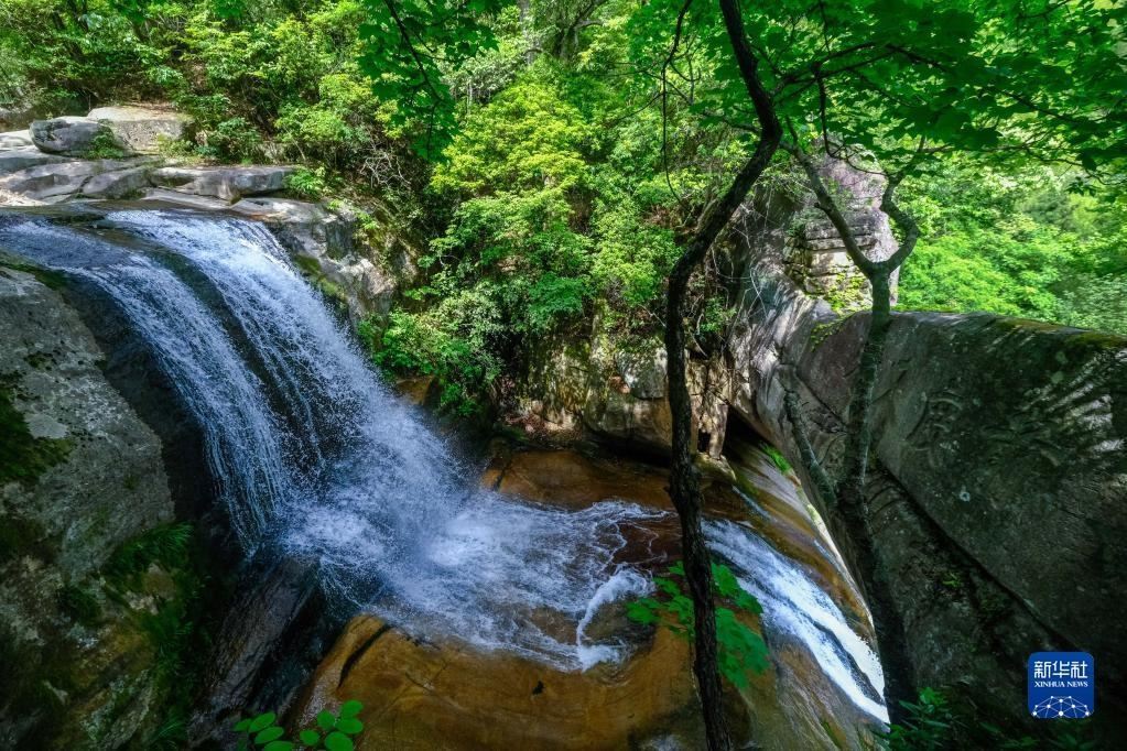 天臺(tái)山瓊臺(tái)仙谷景區(qū)(5月16日攝)。徐霞客在游記中寫道:“峰頭中斷,即為雙闕;雙闕所夾而環(huán)者,即為瓊臺(tái)?!?