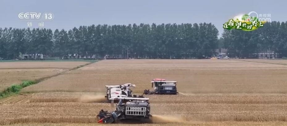 總臺(tái)記者 許偉:這里是湖北當(dāng)陽(yáng)市草埠湖鎮(zhèn)的一塊示范田。我們可以看到,金色的麥穗顆粒飽滿,現(xiàn)在有5臺(tái)收割機(jī)正在麥田里面來回穿梭,收獲小麥。據(jù)了解,今年當(dāng)陽(yáng)市安排了1800多臺(tái)(套)農(nóng)機(jī)具參與到夏收當(dāng)中。
