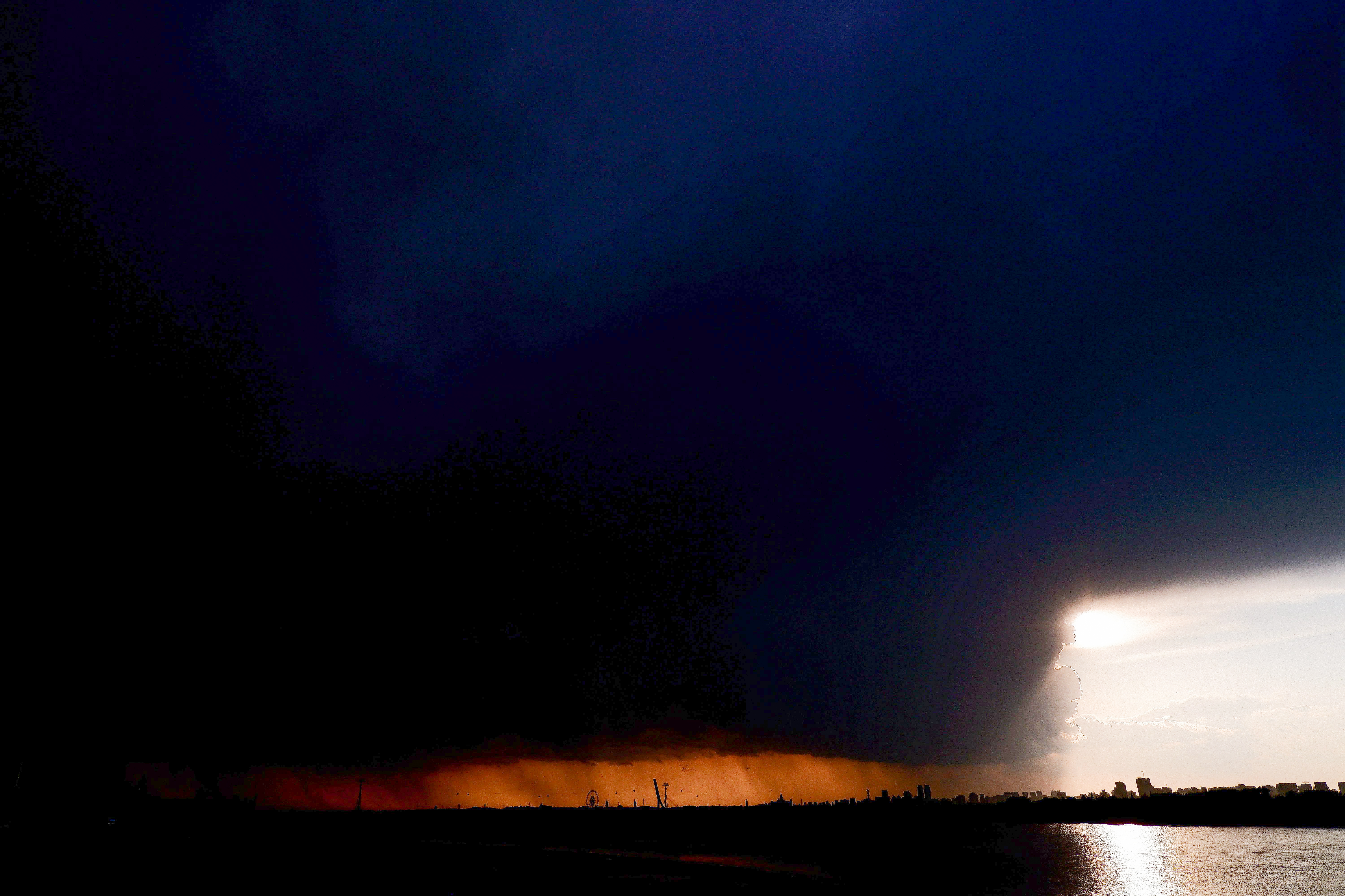5月21日下午,黑龍江省哈爾濱市迎來(lái)強(qiáng)降雨天氣,整座城市被雷暴云籠罩,白晝?nèi)缫?,宛如上演科幻大片? (吳胡荼 攝)