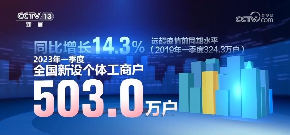 央視網(wǎng)消息:市場監(jiān)管總局5月22日發(fā)布最新數(shù)據(jù)顯示,2023年一季度,全國新設(shè)個體工商戶503.0萬戶,同比增長14.3%,遠超疫情前同期水平。