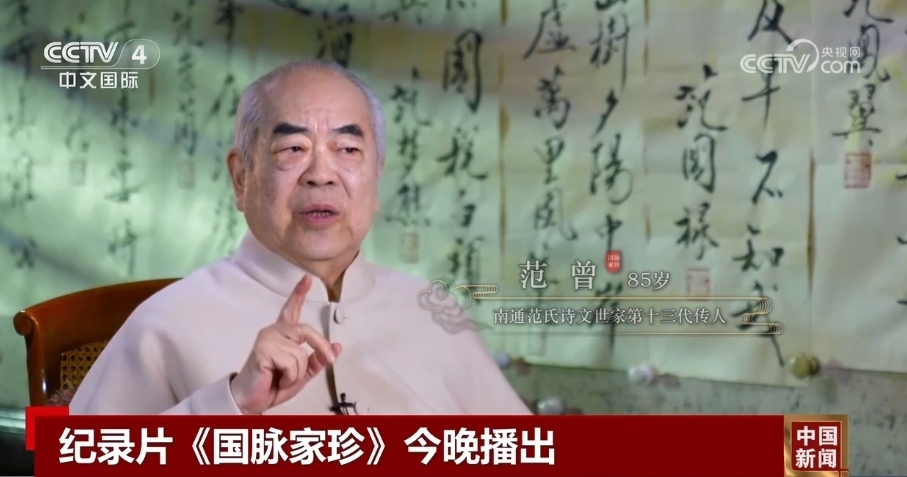 紀(jì)錄片《國脈家珍》從南通范氏詩文世家第十三代傳人范曾的視角,還原家族成員個性鮮明、造詣深厚的傳奇故事。他們或居于廟堂,持守高風(fēng)峻節(jié),或隱于江湖,揮灑豪詩雄文,呈現(xiàn)“國運(yùn)與家事榮辱相伴,時(shí)局與詩筆悲喜相連”的人物命運(yùn)。該片結(jié)合歷代傳人的詩文,反映中國傳統(tǒng)文化綿延不息,展現(xiàn)范氏家族家風(fēng)家教的細(xì)節(jié),探尋其延續(xù)的密碼。